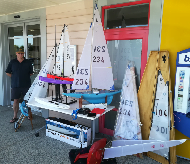 We displayed Paul’s IOM 104, Colin’s DF 95, Ian’s new DF 95 hulls, Paul’s Canterbury J 234 and one of the Club’s six Pegasus 880s.