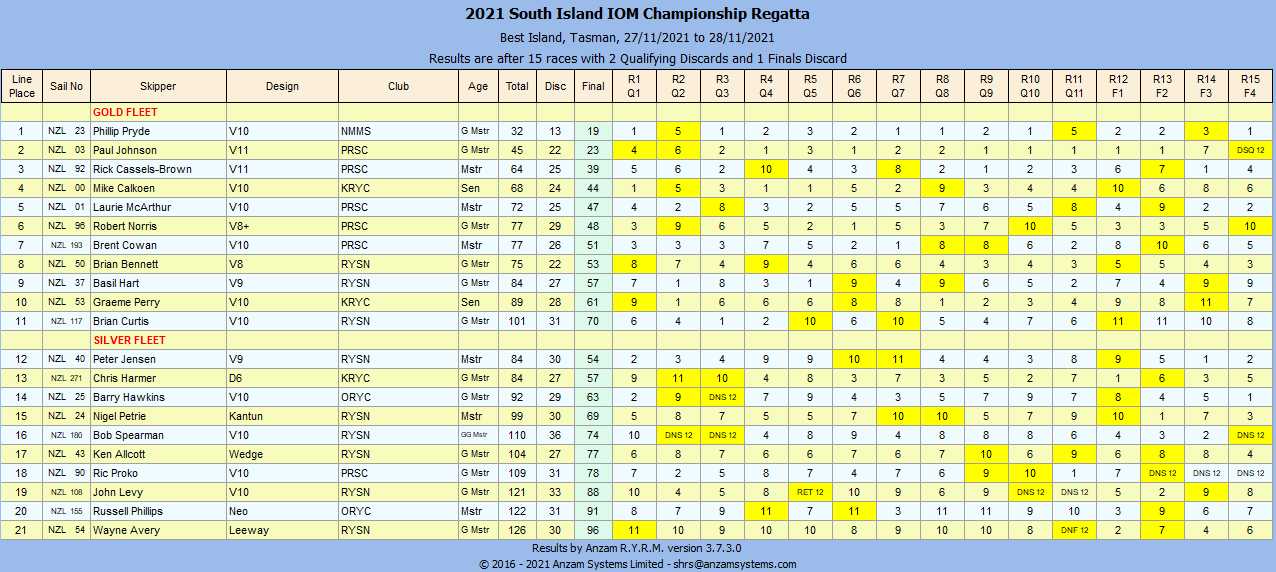 2023 DF95 Combined South Island and Canterbury Championships Final Results